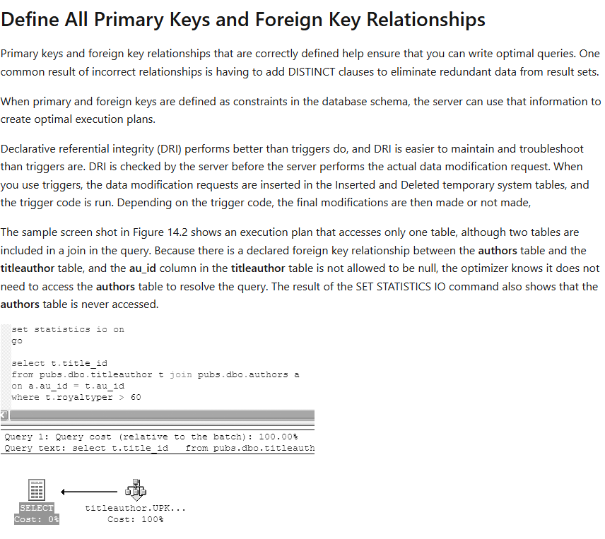 또, 평판 34만점의 한 유저는 위 사진과 같이 MS SQL Server 가이드라인에서 말하는 '외래키 설정 시 DB Server에서 최적화된 참조 실행 계획을 세운다' 를 근거로 외래키에 우호적인 입장을 내비치고 있다. 물론, 참조 최적화가 오버헤드를 발생시키지 않는다는 아닌 것을 알고 있다.